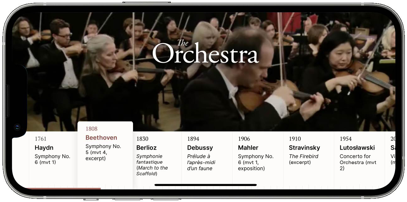The Orchestra app for iPhone and iPad is an introduction to orchestral music, with our Principal Conductor Esa-Pekka Salonen. Highlights include multi-camera, multi-track performances of eight pieces with synchronised score; a synchronised BeatMap highlighting every note played on a graphical representation of the orchestra; and a full guide to the instruments.