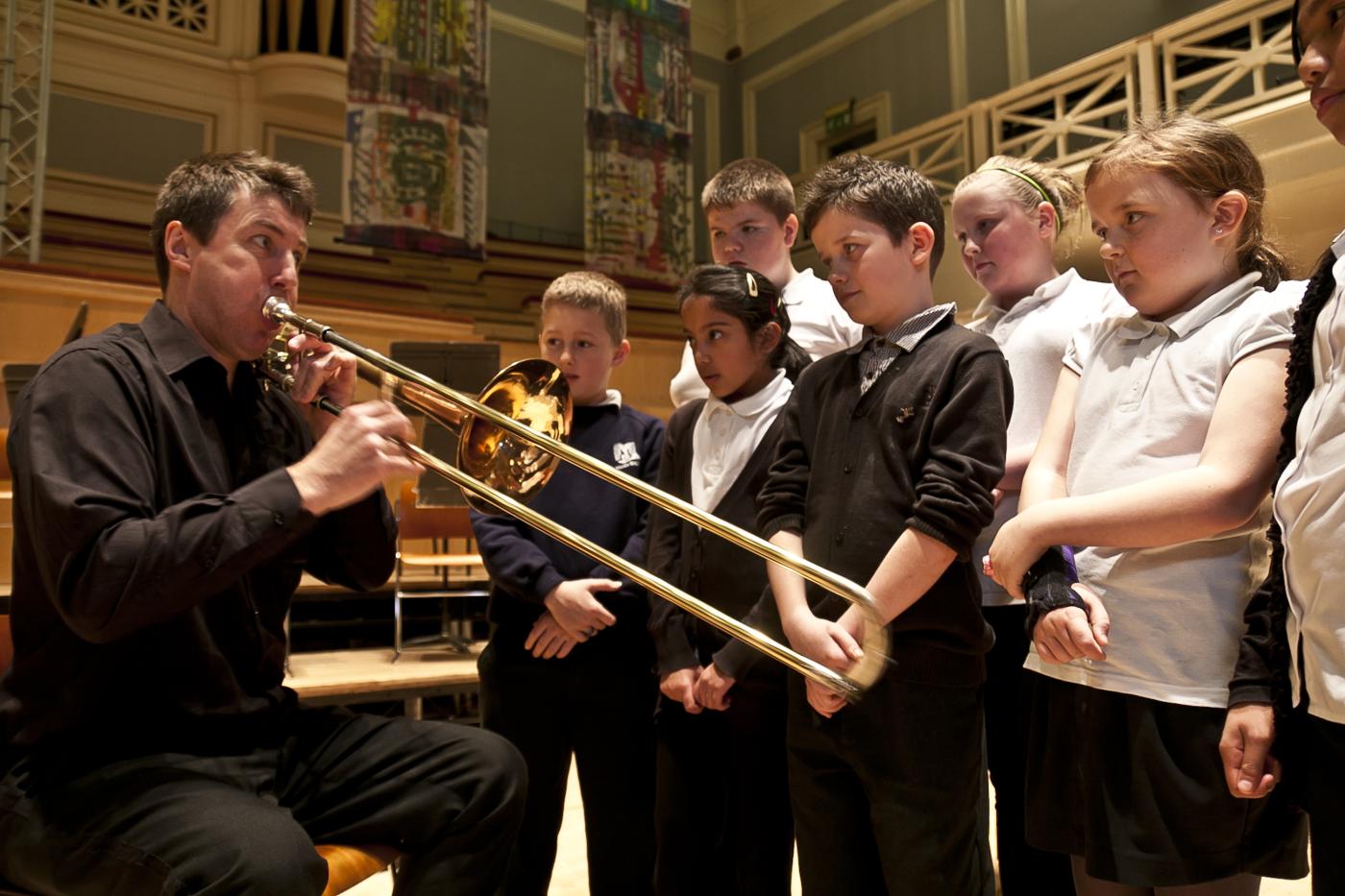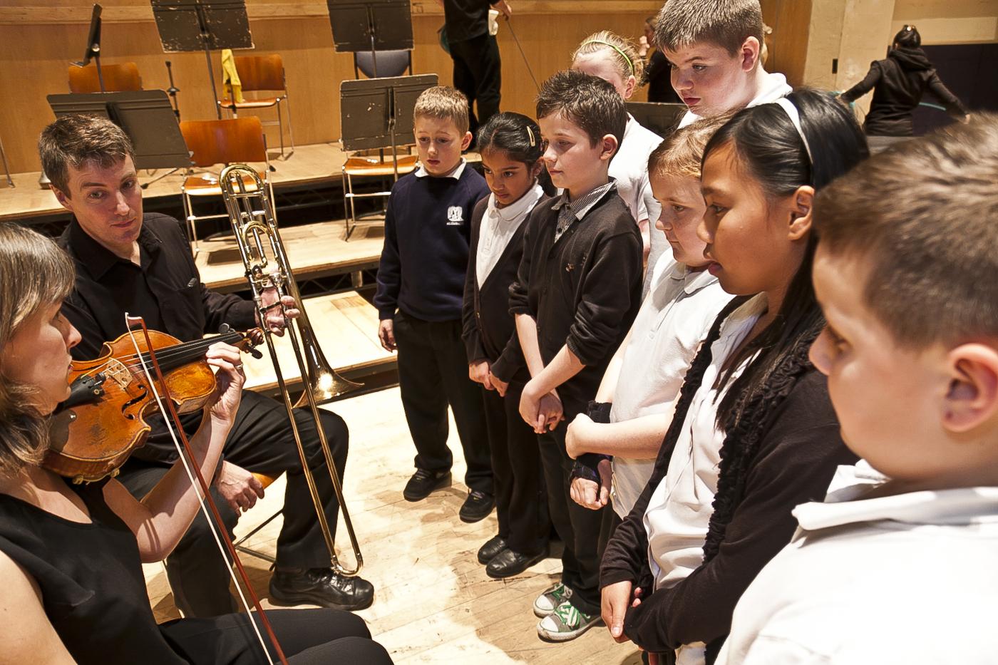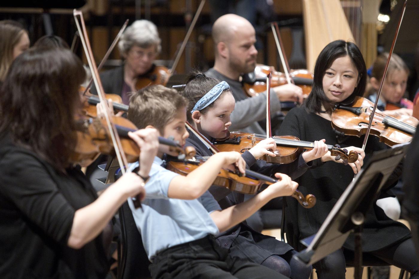 Partnerships with music hubs: enable young instrumentalists to perform side-by-side within the Orchestra during the audience participation piece. Young musicians receive coaching from Philharmonia players in advance.