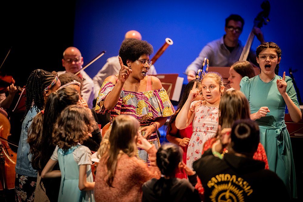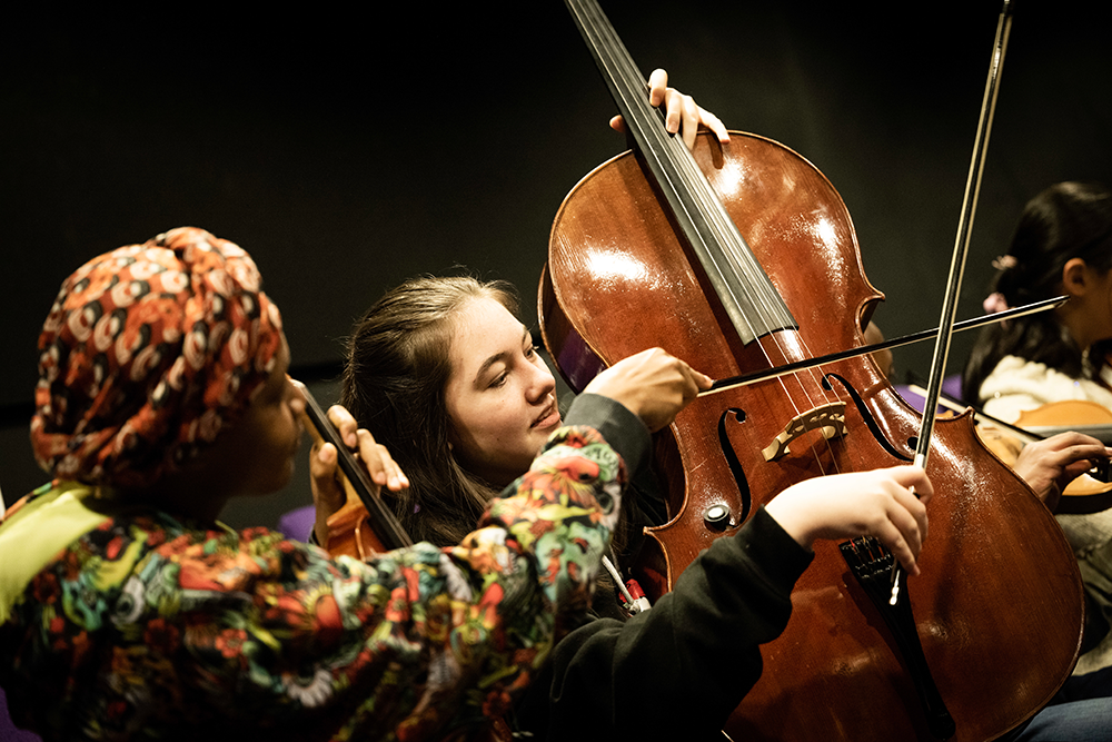Young instrumentalists receive coaching from Philharmonia musicians, and play side-by-side with members of the Philharmonia in performance.